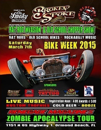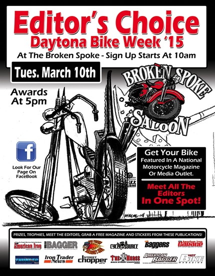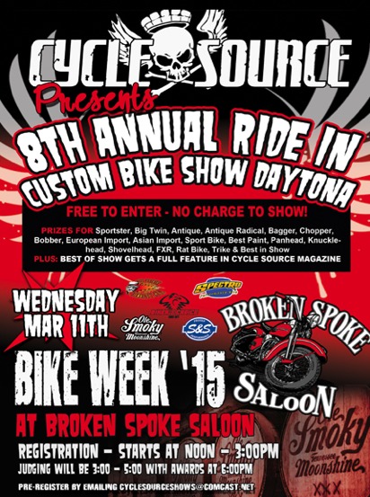 Registration starts at noon, Judging at 3:00pm Awards at 6:00pm Cycle Tons of Classes, Tons of Prizes, handmade trophies, Best of show featured in Cycle Source Daytona Issue.